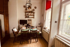 The apartment is in move-in condition but can be renovated to meet modern standards. The floors were tiled in 2000, while the parquet in the rooms was last refinished in the 1990s. The larger room received new wooden windows in 2000, while the other windows retain their original double wooden frames. Wooden shutters inside the rooms provide total darkness and additional soundproofing. The apartment is protected by an alarm system, and the entrance door, opening to the staircase, is reinforced with a triple-lock system.