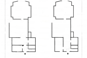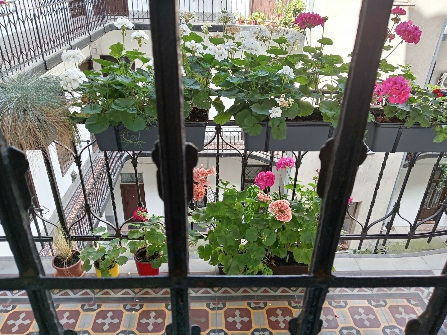 The apartment is on the second floor and opens from the walkway. It includes a spacious hallway leading to the kitchen, bathroom, pantry, WC, and hall. The kitchen window overlooks the walkway for natural light and ventilation. The hall, currently a walk-in closet, was previously a dining room. The two large, bright rooms (32 and 27 m²) are accessible from the hall. The apartment has high ceilings (3.97 meters) and original large doors. A built-in wardrobe enhances the larger room. The flooring is herringbone-patterned parquet, except in wet rooms.