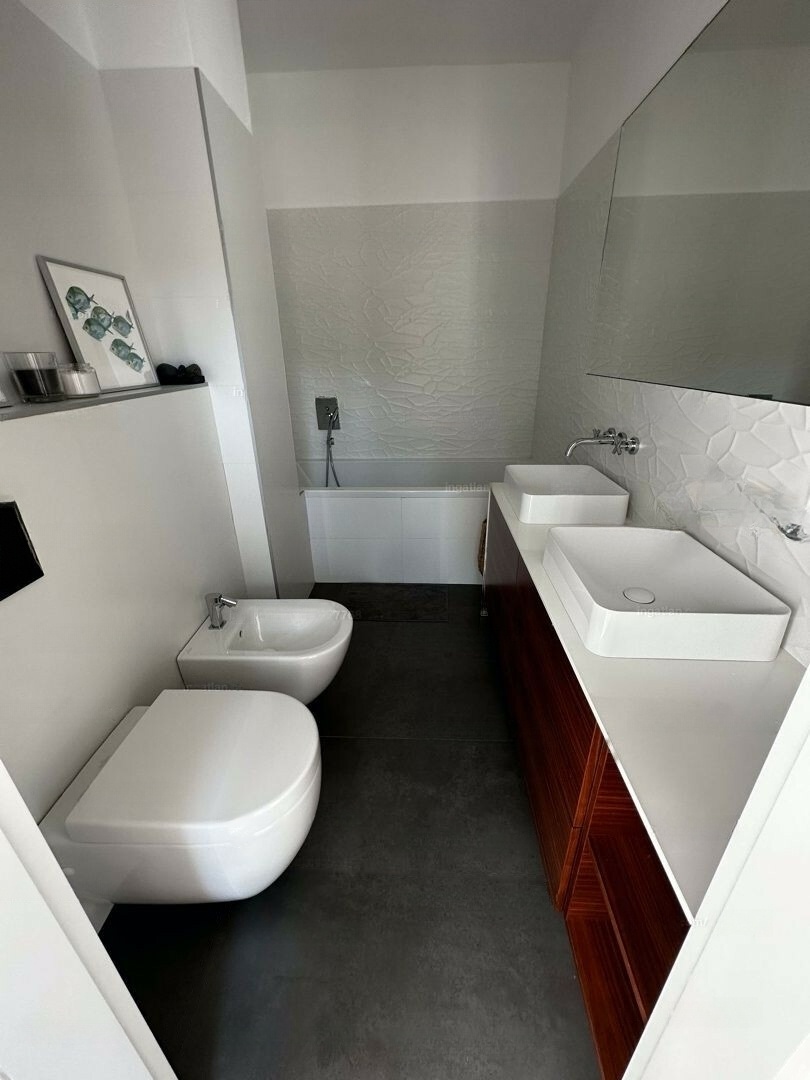 Renovated in 2018, the apartment features new plumbing and all external and internal doors. It has electric, remote-controlled shutters and mosquito nets on southern windows, along with electric awnings on both terraces.