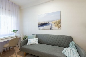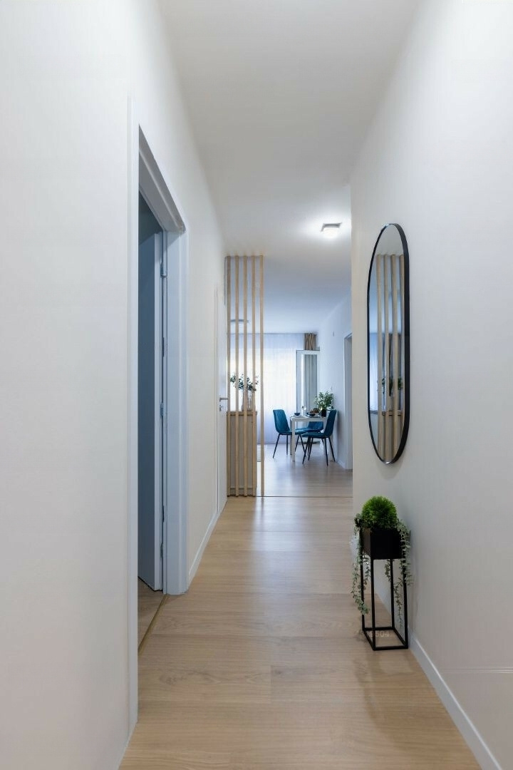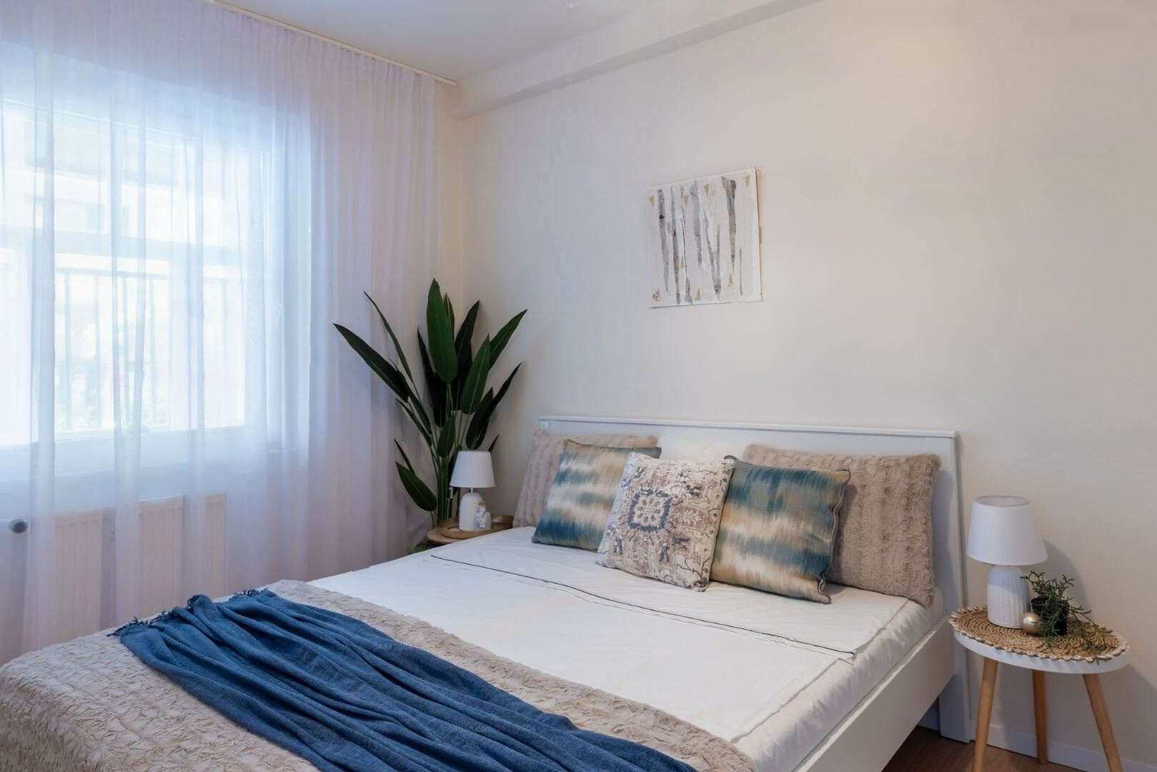 The apartment is in immaculate condition, ready to move in. Designed by an interior designer with new furniture, built-in appliances, and a marble-patterned bathroom. All windows, doors, and the heating system are newly updated, with blinds and climate control.