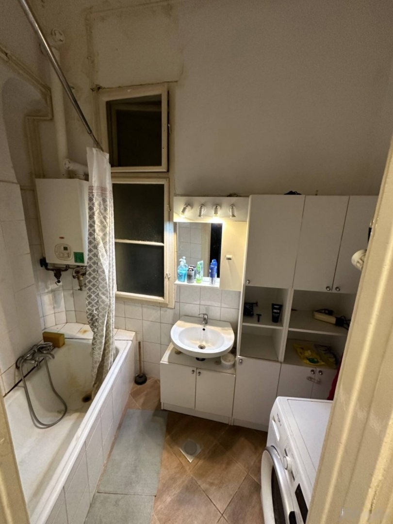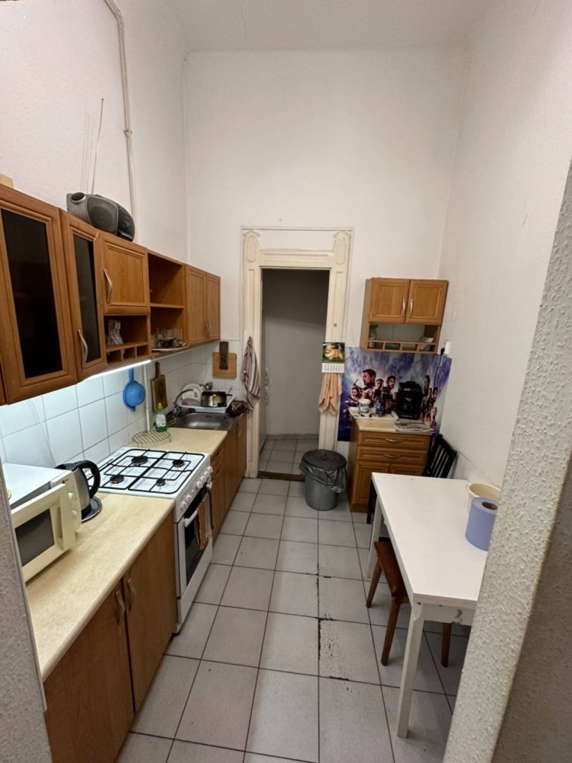 This apartment features two spacious, bright rooms, one of which offers a view of the Buda Castle. Currently, the kitchen is located next to the entrance, with a pantry attached. This space can easily be converted into a room, allowing for an open-plan living room with a kitchen if the new owner prefers.