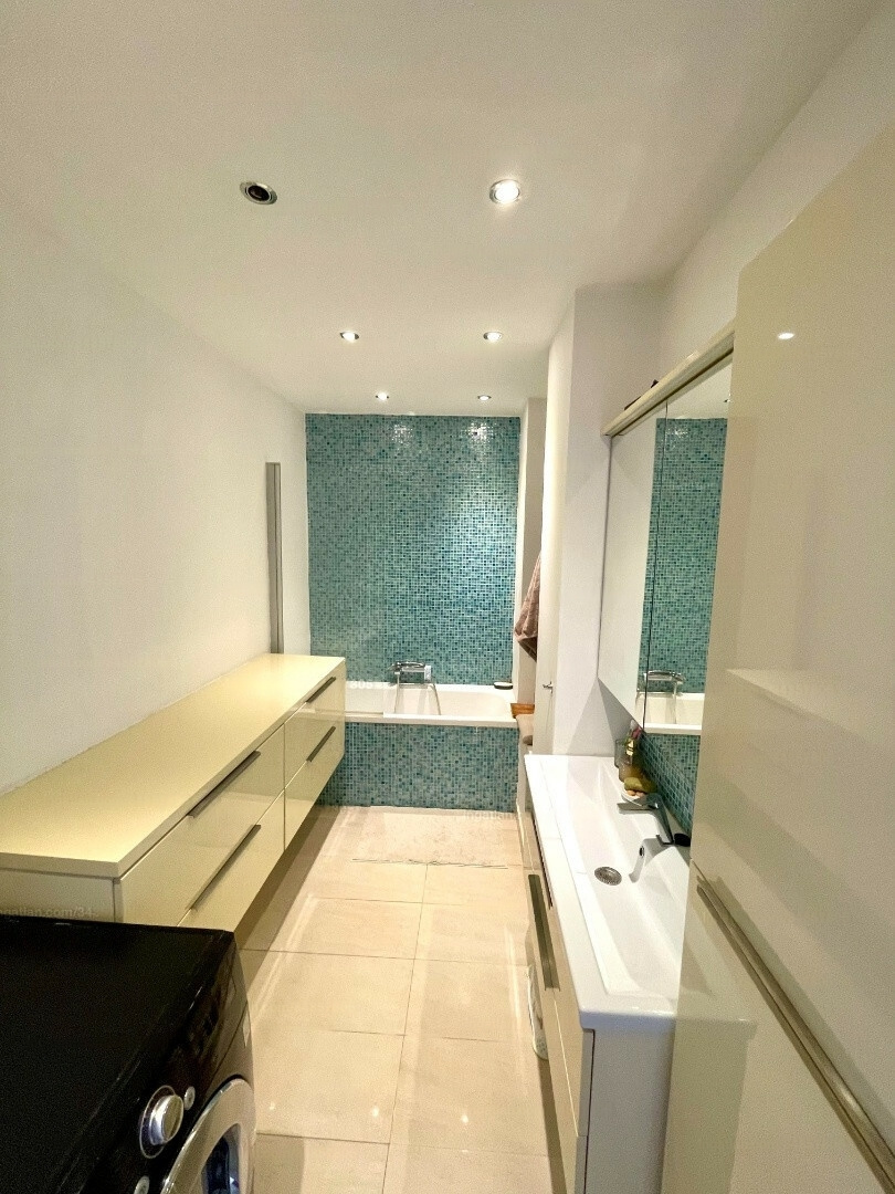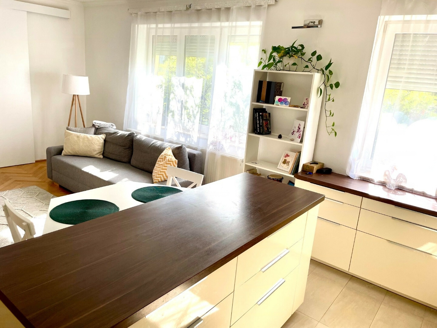 The apartment is beautifully renovated and features an open-plan living room with an American kitchen and 1.5 bedrooms. There is a separate bathroom and toilet, as well as additional storage space provided by a pantry and a separate basement.