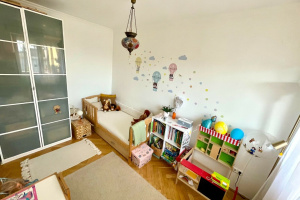 Due to its orientation, the bedrooms receive morning sun, while the living room and kitchen get sunlight in the afternoon. The building has an excellent community and a large, shared garden.