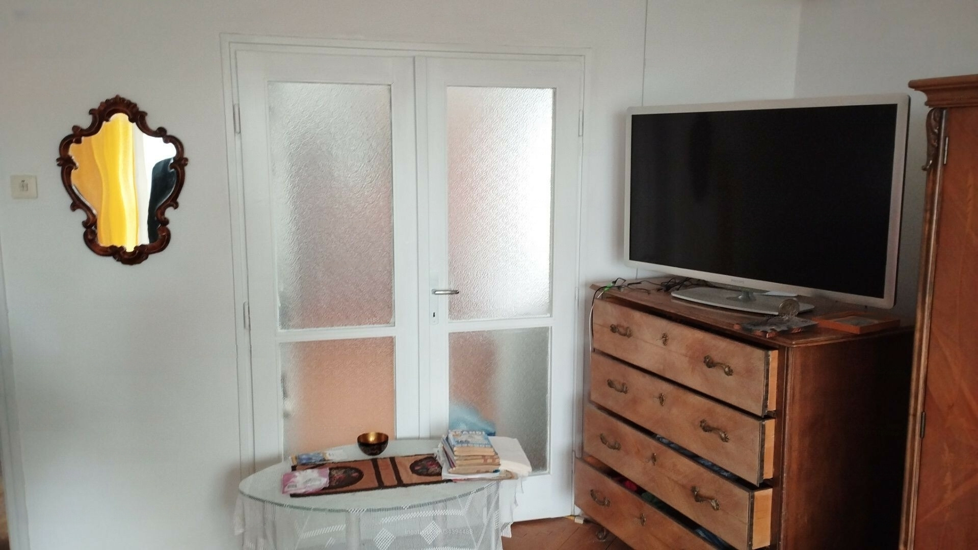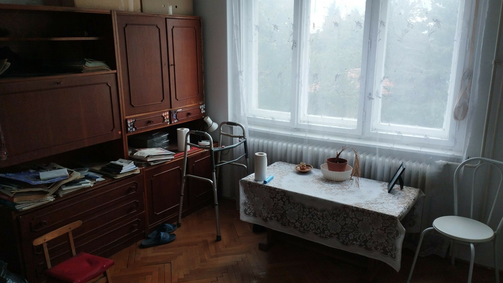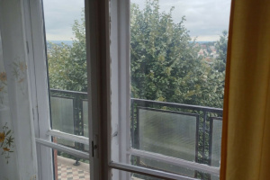 This stunning, first-floor apartment features a spacious balcony with a beautiful panoramic view, located in a building with 9 apartments. It includes a private storage room (approximately 5 m²) in the basement. The apartment is in need of renovation and comes with a gated garden.