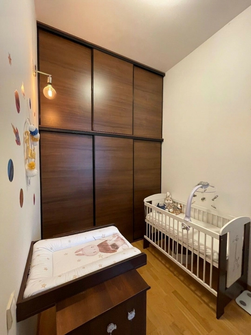 From the hallway, there is a children's room equipped with a floor-to-ceiling built-in wardrobe. The apartment offers double comfort with a bathroom and a separate toilet for added convenience. Additionally, there is a pantry accessible from the hallway.