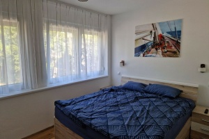The layout includes a half-room next to the bedroom, which is not shown in the photos. The property also includes a 5 m² terrace, a private storage unit as well as access to a shared storage space. Additionally, residents can enjoy a shared garden area, complete with a fire pit for grilling and a well-maintained lawn with a sandbox for children in the enclosed courtyard.