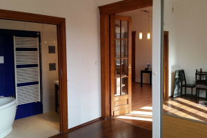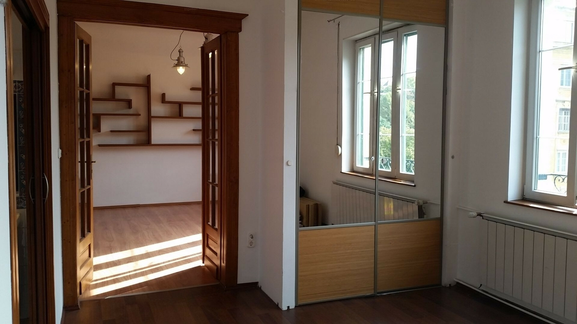 in the heart of Tabán, near Dózsa György Square. The apartment faces southwest.