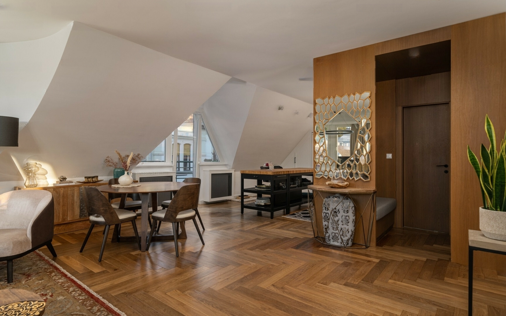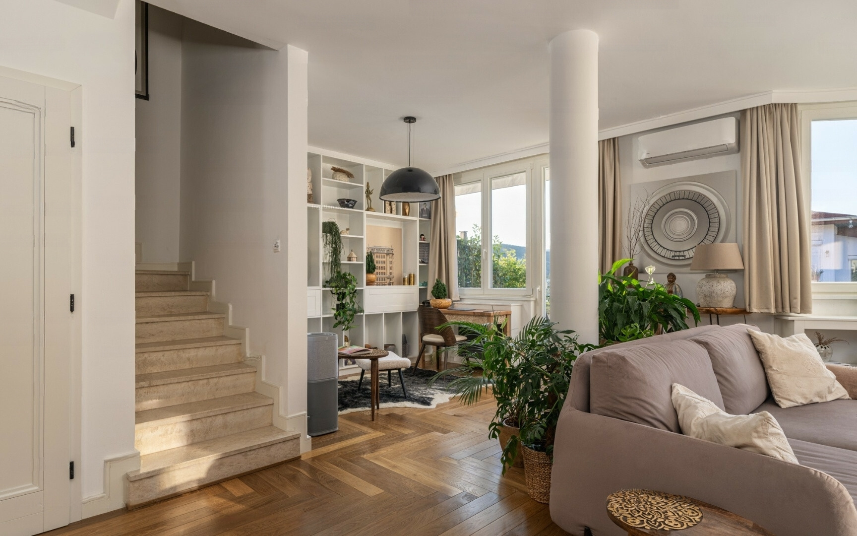 The apartment has undergone a complete renovation and transformation in luxury quality. New triple-glazed wooden windows have been installed, along with new interior doors and a security entrance door. Steamed oak oiled parquet flooring has been laid throughout the apartment, except for the bathrooms.
