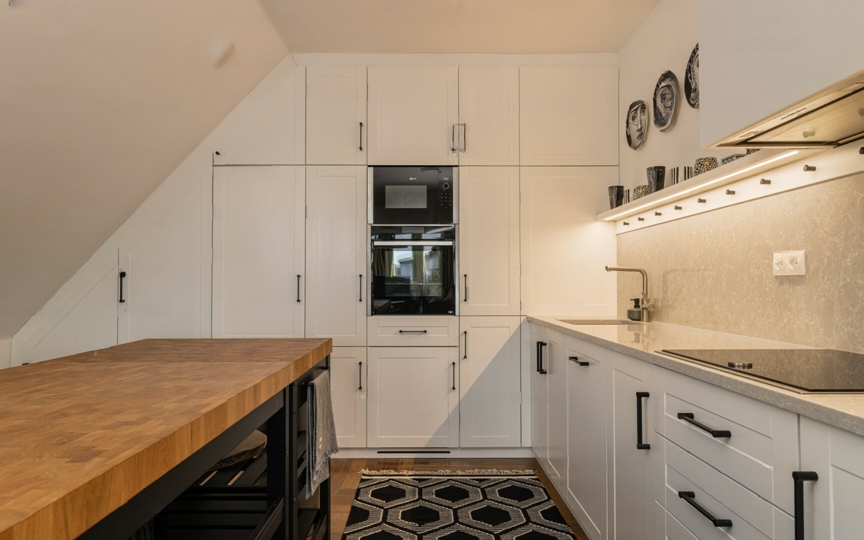 Heating is comfortable and economical with central heating, controlled centrally. Each room is regulated by thermostats. The building was constructed in the 1990s as both an office and residential building. The apartments are located on the 3rd and 4th floors.