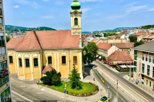 This charming apartment is located on the 7th floor of a lift-equipped building, facing the Krisztina Square Church and Buda Castle. With a North-East orientation, the apartment remains cool in summer, while its elevated position ensures it is bright throughout the day, receiving afternoon sun.