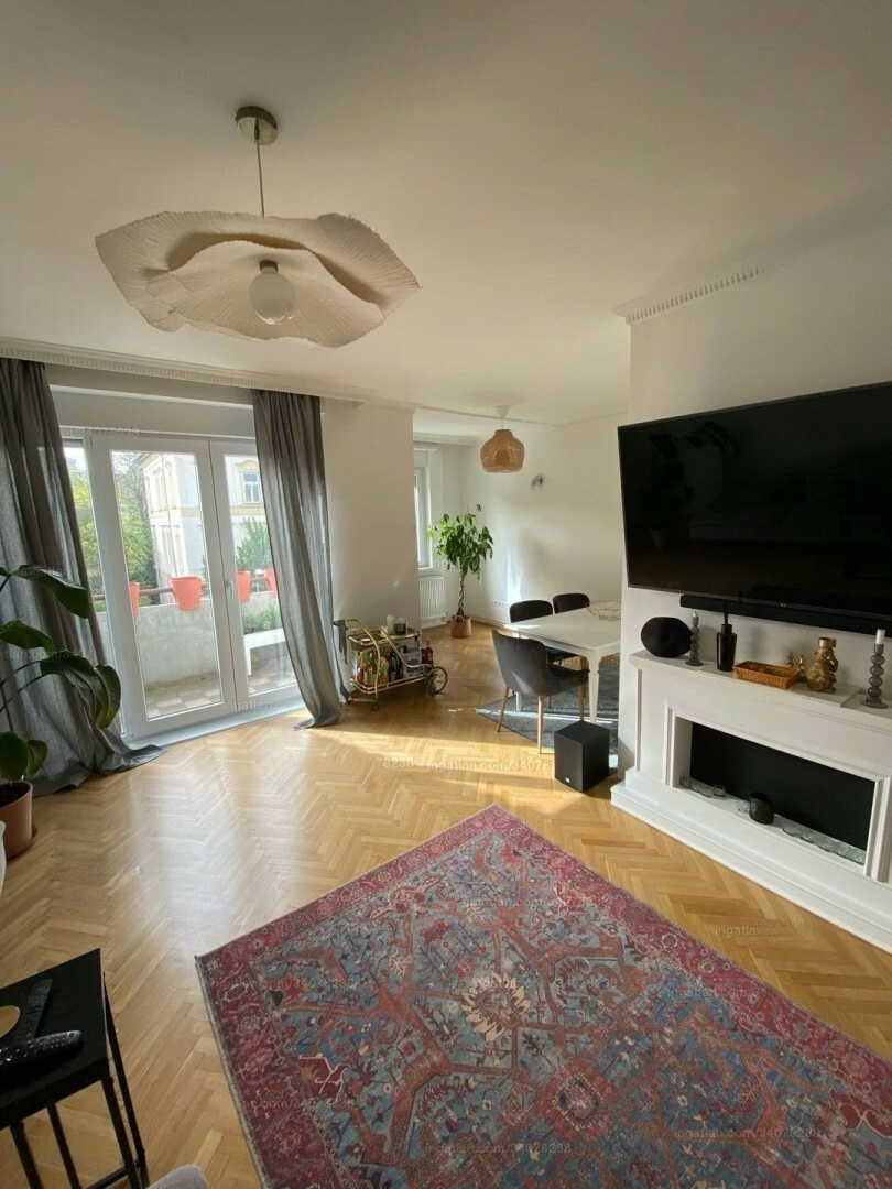 The living room opens onto a balcony overlooking a secessionist villa built in the early 1900s, while the bedroom faces a green inner courtyard with trees and plants. Thanks to the latest windows and aluminum blinds, the property is very quiet. The half-room opening from the living room can be used as a child's room or guest room.