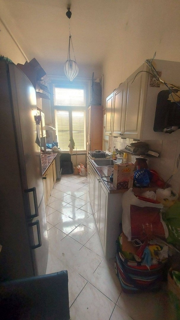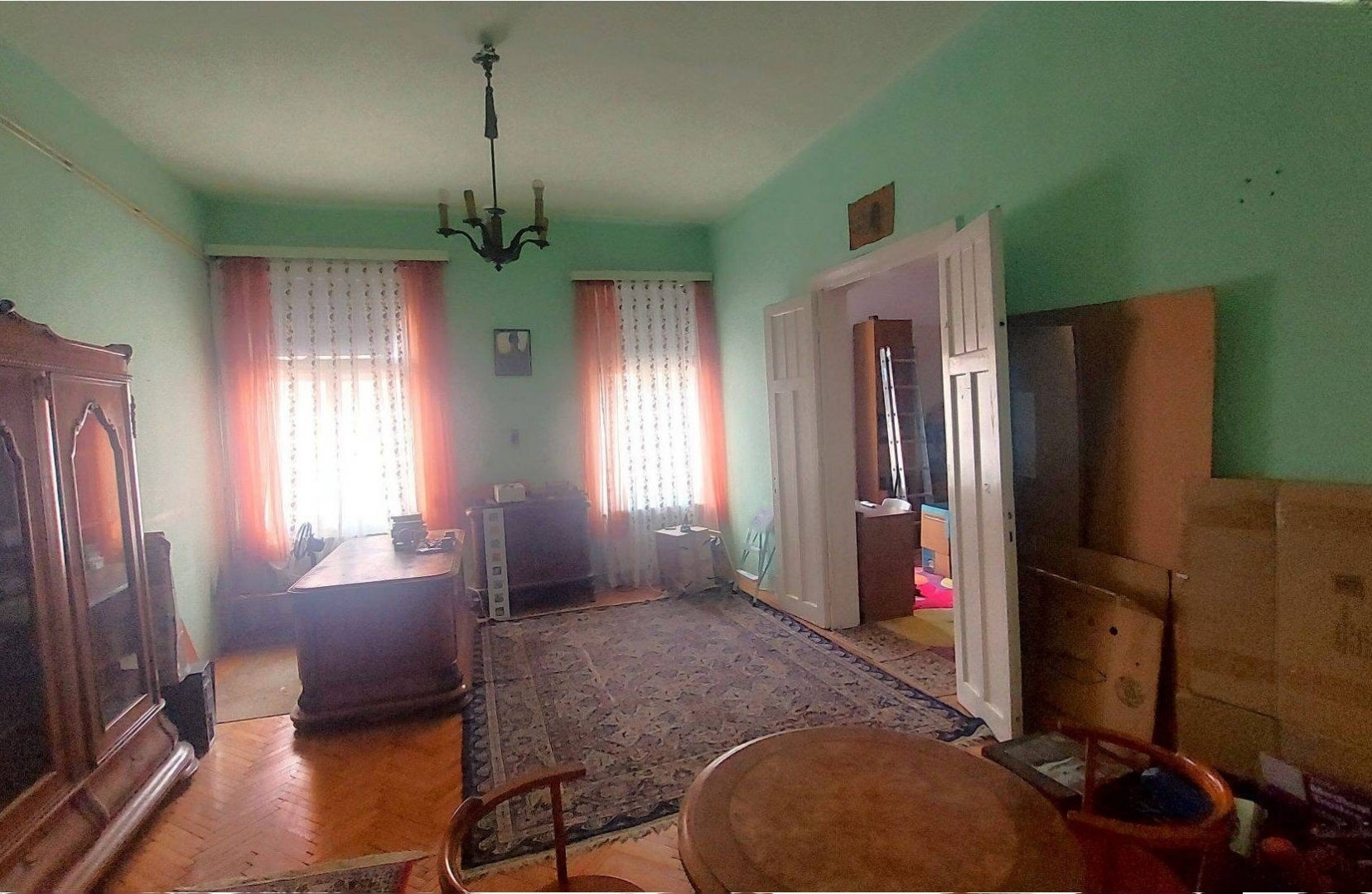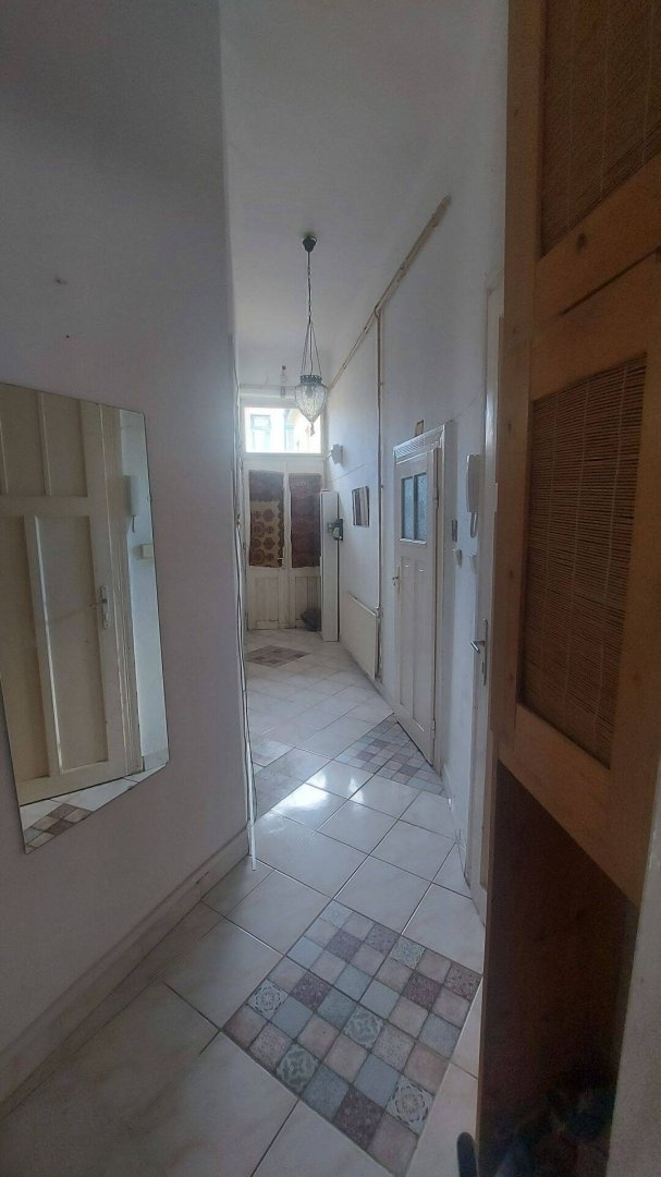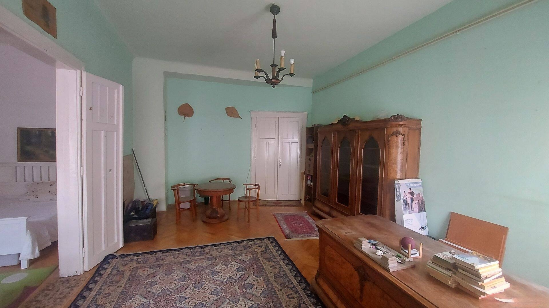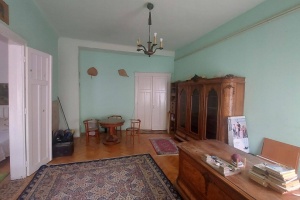 a large, classic apartment in a quiet brick building, in need of full renovation. The apartment is located in a calm neighborhood on a quiet street.