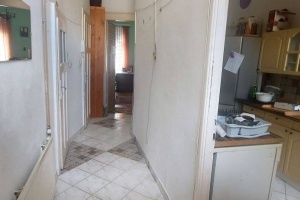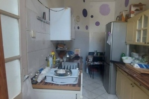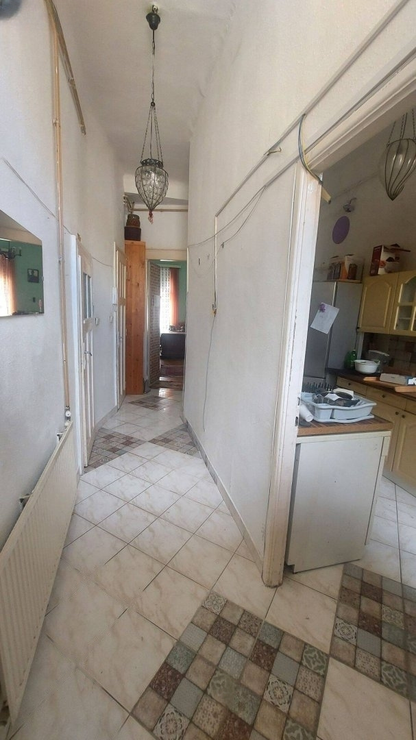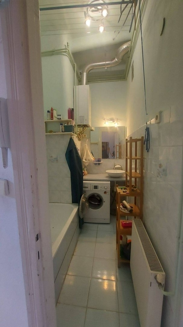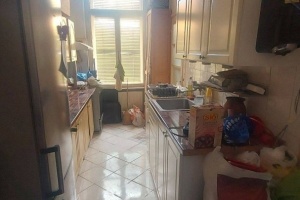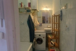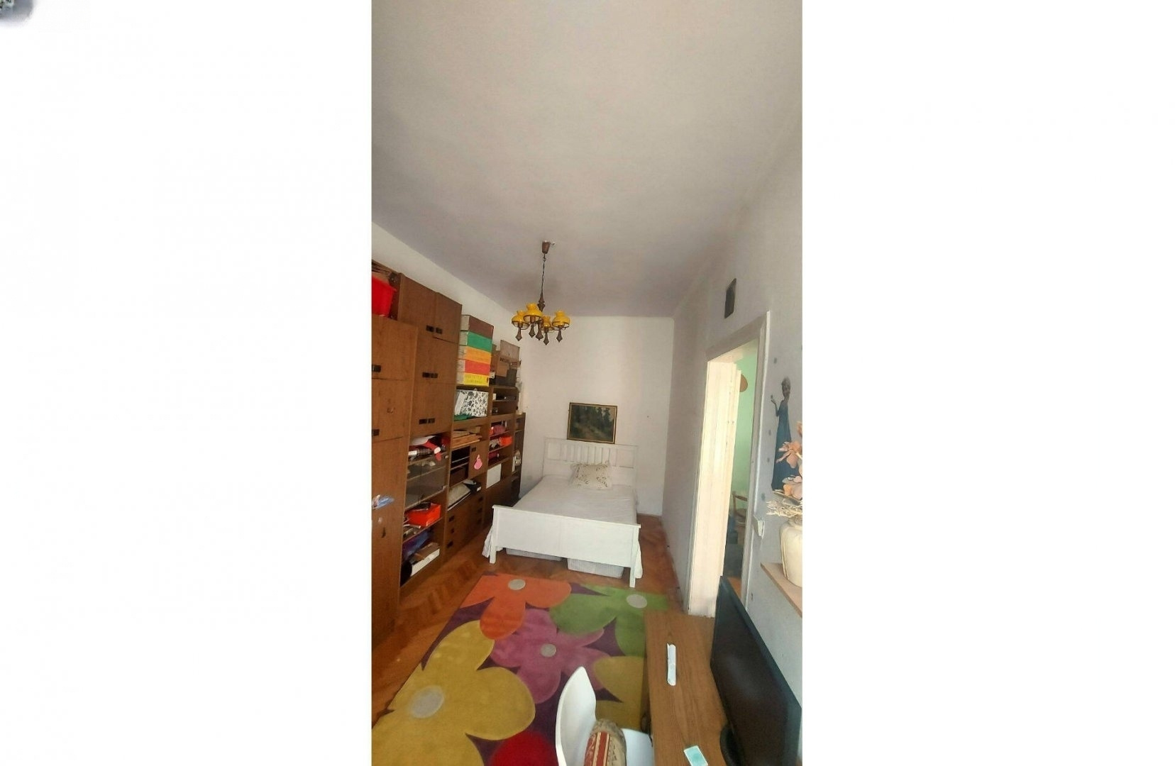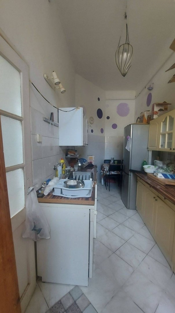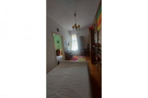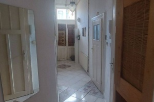 a large, classic apartment in a quiet brick building, in need of full renovation. The apartment is located in a calm neighborhood on a quiet street.