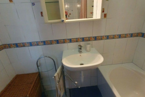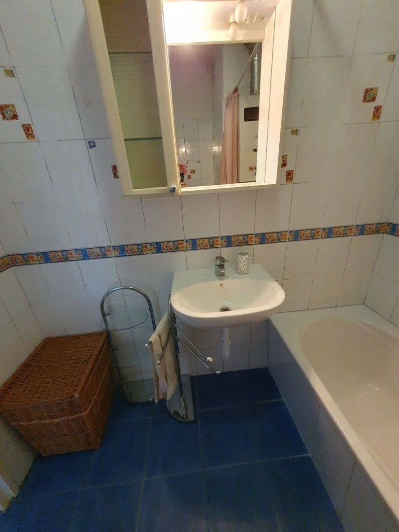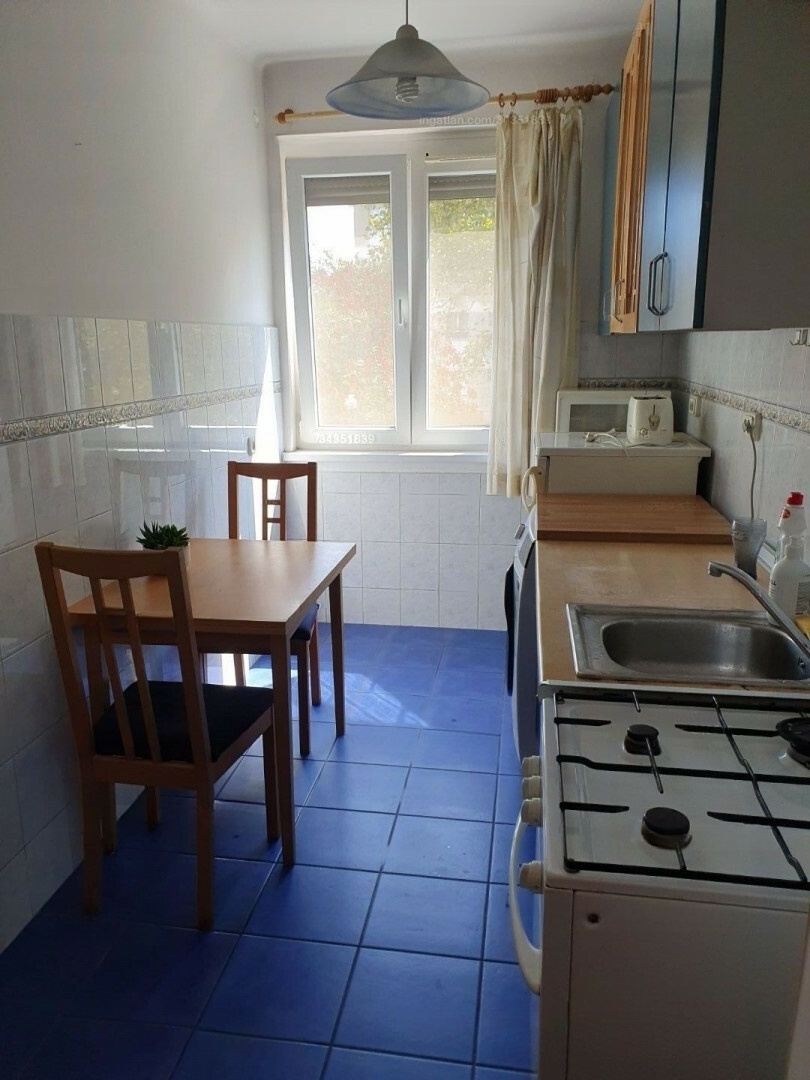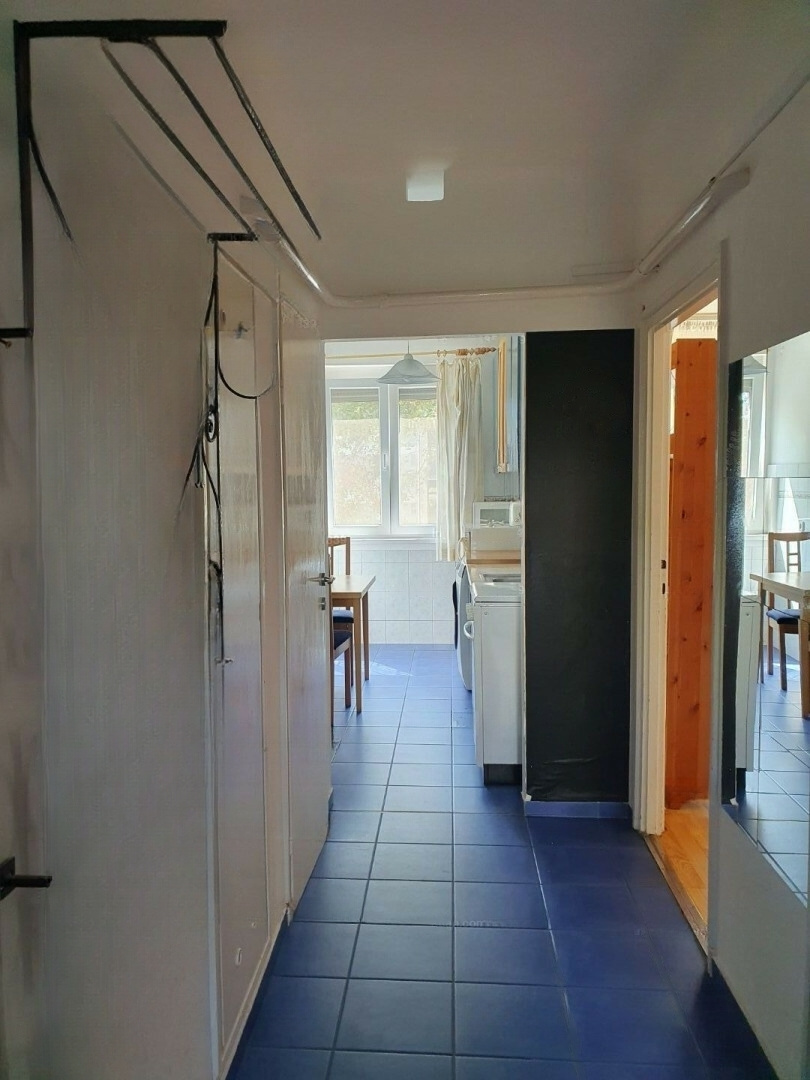 The apartment features insulated windows equipped with blinds and mosquito nets. Entering through the security door, you arrive in a spacious hallway, from which you can access the bathroom with bathtub (5 sqm), the living room overlooking the park (19 sqm), and a pantry. At the end of the hallway, you'll find the bright, windowed kitchen (6.6 sqm), which can easily be converted into a bedroom if desired.