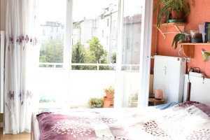 This well-arranged 4th-floor apartment, located near Szent István Park, features high ceilings (3 meters) and quiet, spacious rooms. It includes three separate entrances to bedrooms and a dining kitchen, as well as two balconies—one overlooking a large, lush garden to the south.