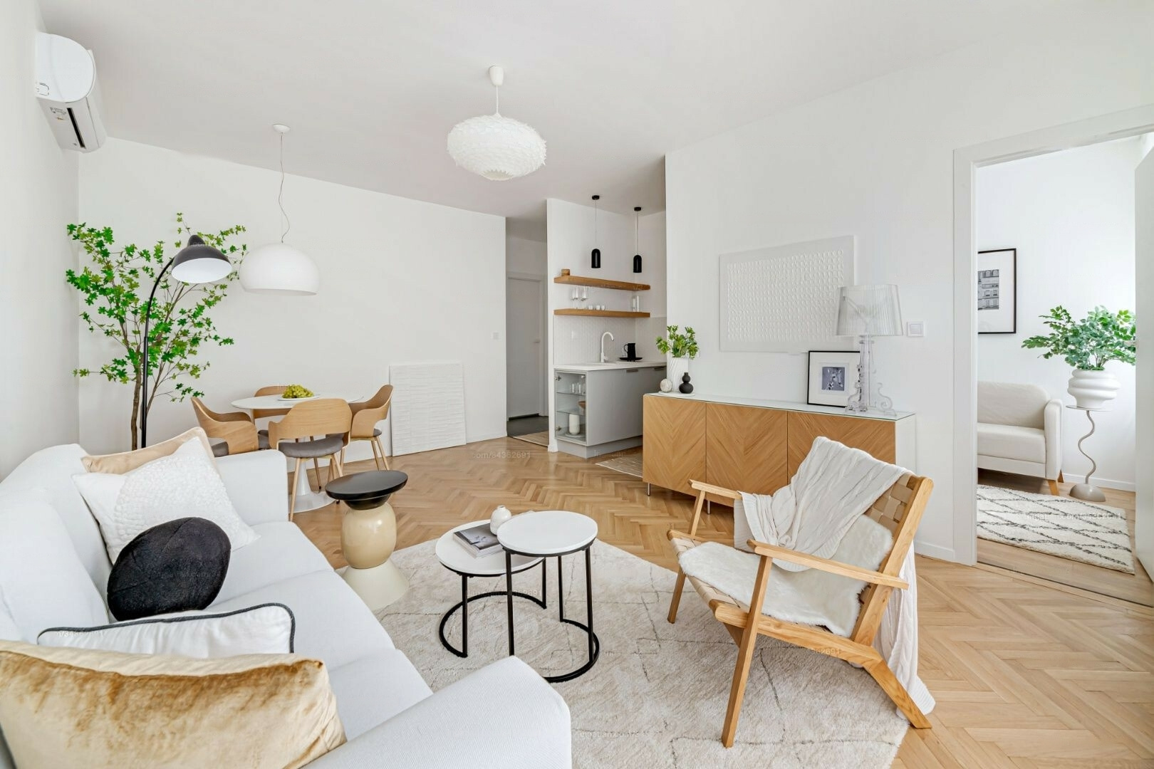 Fully renovated, the property includes new water, electrical, and heating systems, new gas boiler, radiators, tiles, doors, and restored oak parquet. The apartment is move-in ready, featuring a custom-designed kitchen with built-in appliances (oven, induction hob, extractor, dishwasher, and fridge), air conditioning, insulated windows with blinds, and insect screens.