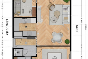 Exceptional value at 129.99 million HUF, including built-in kitchen appliances and furniture. Additional furniture can be negotiated.