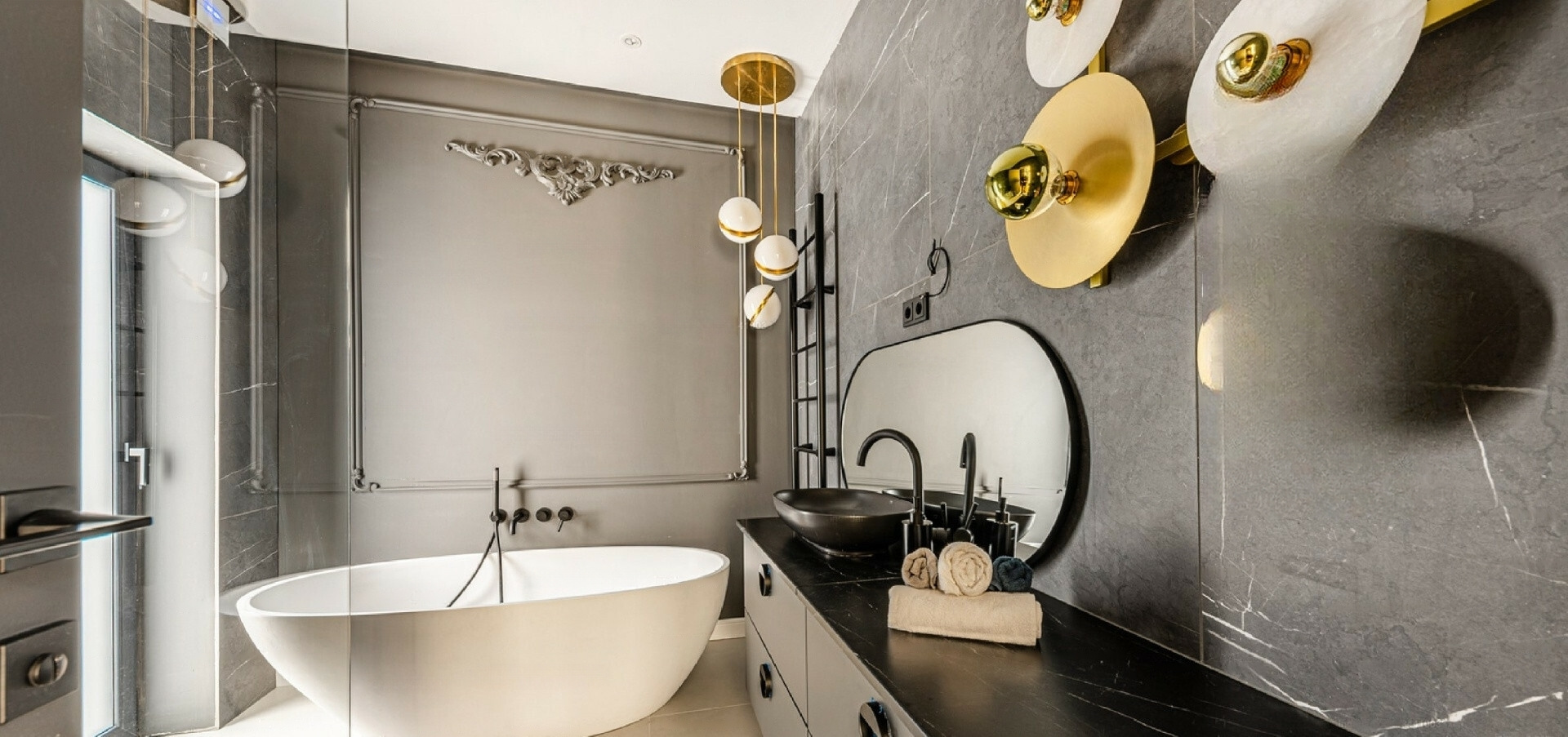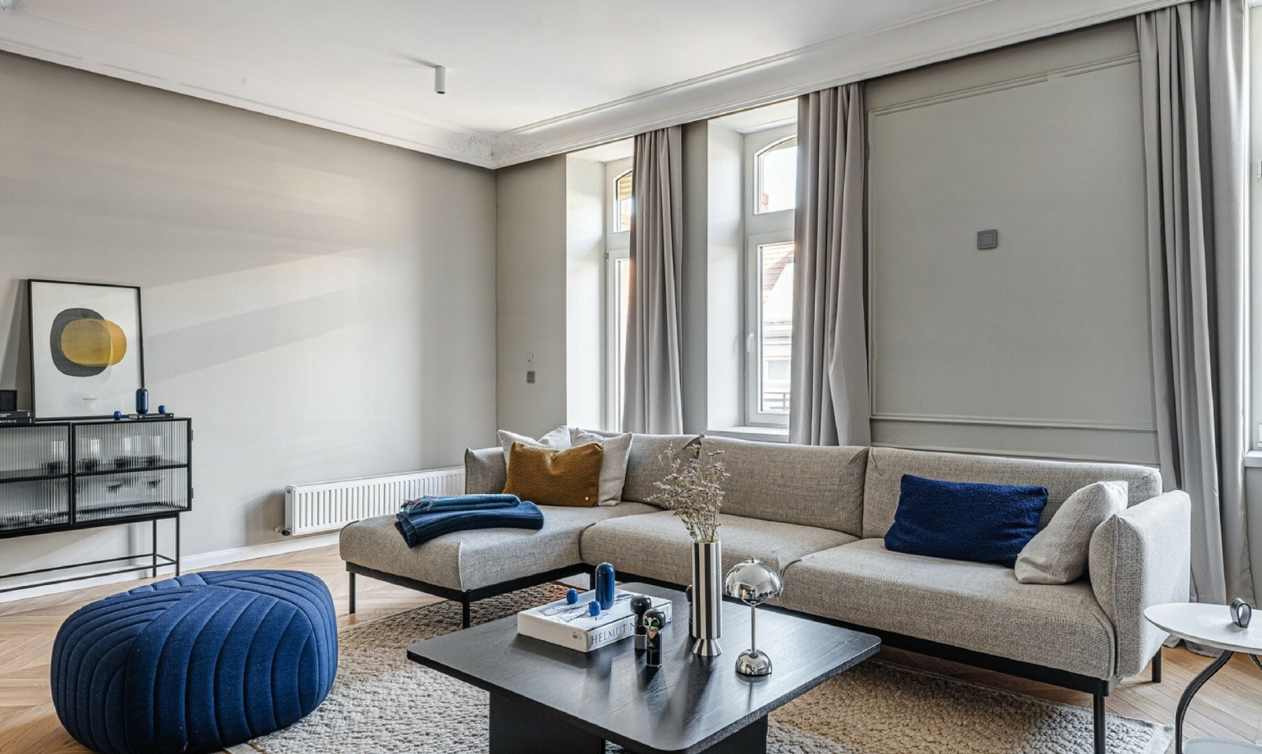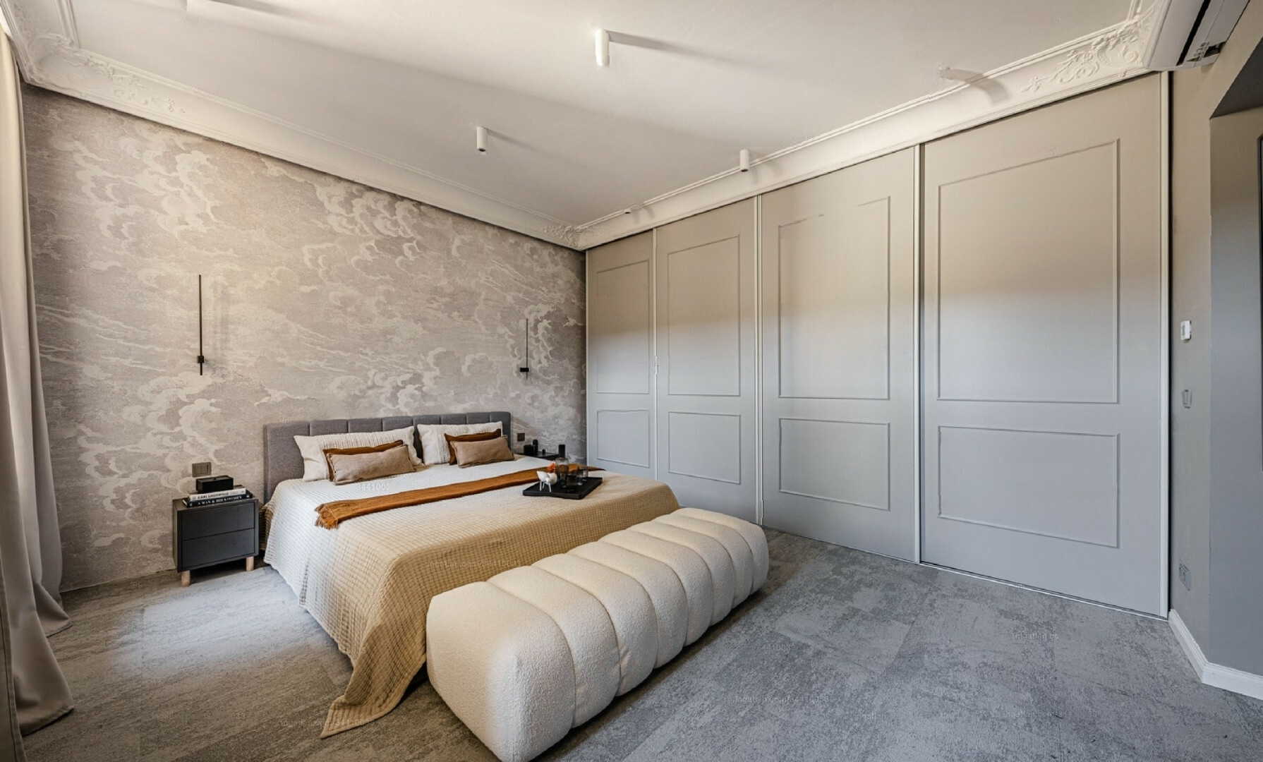 The design, crafted by a professional, provides a unique and stylish appearance. The custom-designed kitchen is equipped with high-quality appliances, while the hidden cabinets serve as sophisticated décor.