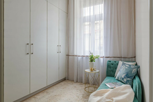 Located in a quiet, well-maintained civil apartment building. The facade was recently refurbished.
