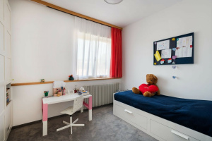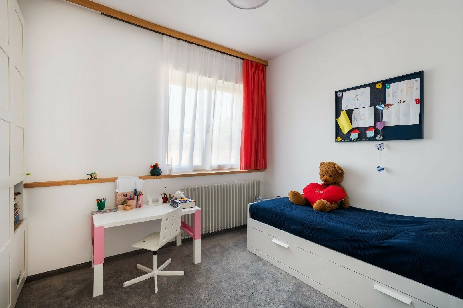 The second floor is accessible from the street without stairs, and the apartment includes a 2.5 m² storage room and a garage suitable for a smaller car. Public transport connects easily to Normafa and the city center.