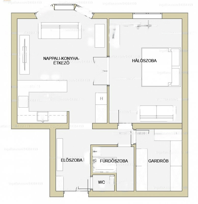 Apartment: Designed by an interior designer, this home features high-quality finishes and original but modernized windows and doors. The layout includes a bright entrance hall, guest WC, American kitchen, and living area with a spacious bedroom. The windowed bathroom has an additional WC. The apartment overlooks Pilvax köz, a pedestrian street.